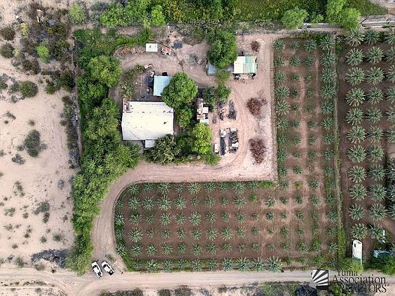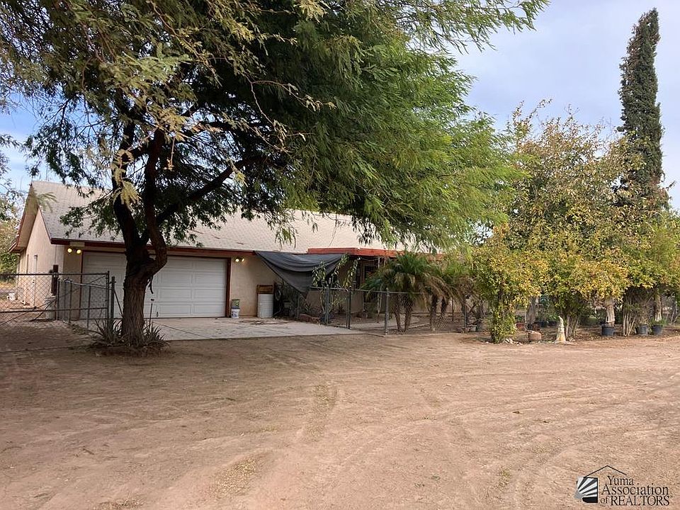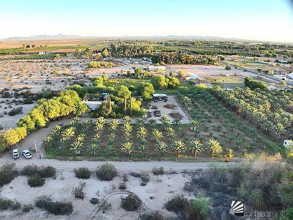 Country living on 2.5 acres. Split floor plan with 3 bedrooms, and 2.5 baths and covered porch on the back approximately 10X40. Kitchen has Quart Counter tops, and bedrooms are spacious. Property has 120+ Date Palms already producing, plus many fruit trees including oranges, grape fruit, lemons, tangelo, guava, pomegranate, and mesquite trees for shade. The property has RV hookup, a storage shed with lock, horse corrals, and a big metal shade on the back.