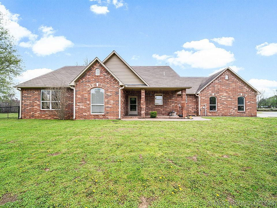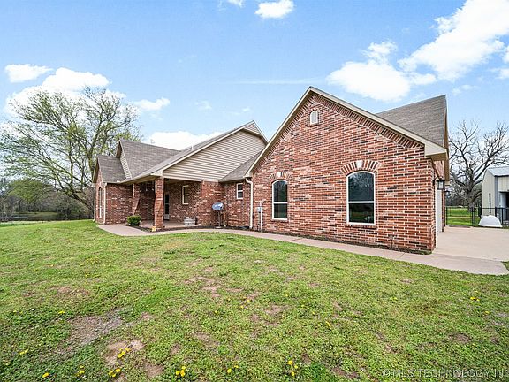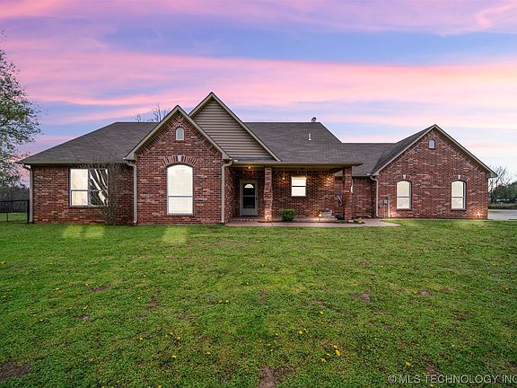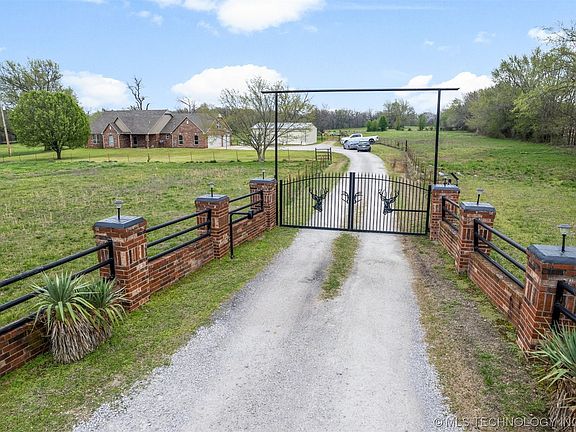 This property checks all the boxes for rural living at its finest! It has the land, shop, and pond. This custom, brick home sits on 9.66 acres m/l with a brick, gated entry for security and privacy, along with a private pond (not shared). This beautiful home features 3 beds, 3 baths, and a 3 car garage with custom finishes throughout. There is a 396 sq. ft. (not included in square footage) flex room above the garage that could also be a 4th bedroom. That gorgeous stone fireplace is connected to the air ducts to heat the whole home. New interior paint and primary bedroom flooring in 2022, new water heater in 2021, and new A/C unit in 2020! The 30'X40' shop is ready to be finished, has two overhead doors and is connected to the septic. Water and electric are in place for the shop, but not connected. Also on the property is an 80'X50' covered, arena. There are so many possibilities with this amazing property! Just a few minutes to town and HWY 66. The beautiful Claremore Lake is just down the road. Call to get your showing scheduled today!