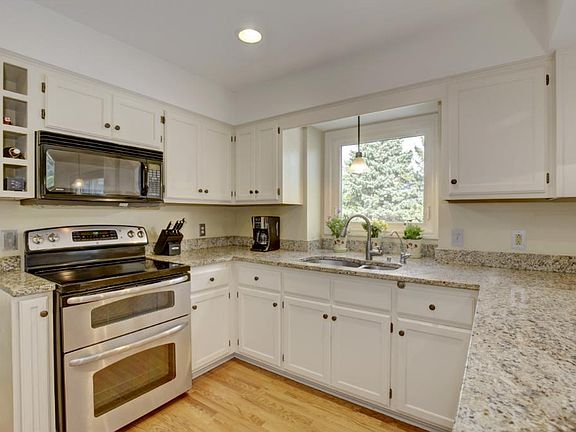 Stunning hm offers spacious living & boasts wooded lot w/in minutes of Crystal Lake Golf Club,S.Michaud Park & freeway access.Inside notice the modern style highlighted by recent KT updates,SS apps,white cabinets & trim,rec lights,new carpet, newer roof,siding,furnace,AC,WH & more.This home is impeccably maintained!2 fireplaces,ceramic & wood floors,updated bathrooms!Multi-purpose spaces inside and out.Notice the over-sized that deck overlooks a beautifully secluded backyard!Request full list