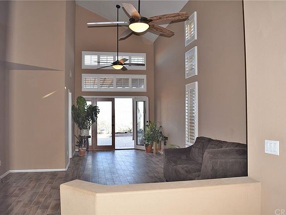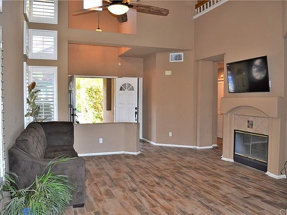 City Lights View! Lake View! Mountain View! Situated in the highly sought after community of Lake Hills. This 2-story home has views from every room. As you walk in your double door entry you will have an immediate view of the lake and city from your formal living area with high ceilings and a fireplace. With granite counter tops, X-large kitchen island, more views and open to the family room with another cozy fireplace the kitchen makes for easy entertaining. Wood tile flooring throughout the whole downstairs makes it beautiful and functional. Up the stairs, down the hall and through the double doors you will find the master suite and master bath. Double sinks, plantation shutters, new dual pane windows, enormous walk-in closet and best of all an oversized window to take in all the views this home has to offer. Two large bedrooms and a full bathroom make up the remainder of the second level. New AC/Heating unit and new water heater. Walk into your backyard and take in the panoramic view of the lake, city lights and mountains...sit back and take it all in sitting around your built-in gas firepit. Low low taxes, No Mello Roos. Beautifully maintained landscape, mature trees and parks surrounds the community. Near to schools, parks, shopping.