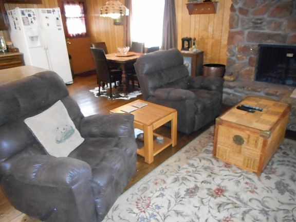 Darling cabin set back on an oversized lot in the cabin only area of Pinewood Country Club. This two bedroom, two bathroom cabin has a great room concept with kitchen opening to dining and living area. Light tone paneling adds to the woodsy look and feel of this forest get-away! Detached one plus car garage, large front wrap deck, air-conditioning and forced air gas heating and the home is partially furnished. Both bedrooms are large and there is a master bedroom sitting area that could easily be another sleeping location. Ceiling fans and a focal fireplace round out the features that this very cute home offer. There is also plenty of parking, several large Ponderosa Pines and lots of space for a garden or outdoor entertaining area.