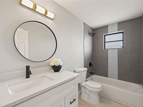 This freshly renovated property awaits its new owner! On city water and assessments paid for. Located in the most desirable neighborhood of San Carlos Park just minutes from Gulf Coast Town Center, i75, US41, RSW Airport and in an excellent school district. Just under 2,000 sqft of completely renovated interior, this 3 bed 3 bath home is everything you've been looking for! The luxurious new open-concept kitchen offers stainless steel appliances, quartz countertops, upgraded cabinetry and an oversized dining room area perfect for family time. This home has a new roof, newer AC, new flooring, new stucco siding and fresh exterior and interior paint. Bathrooms have been completely redone with new tile showers and new vanities. Beautiful two-story home features an expansive 400 sqft dual level backyard deck perfect for hosting and entertaining. Make this the backyard of your dreams with enough room for a pool, pairs well with Florida outdoor living!