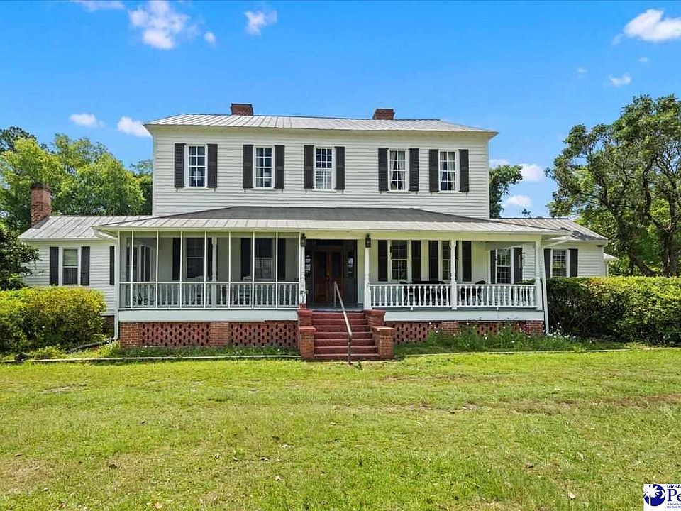 Discover “Cedar Lawn” in historic Society Hill, SC. Built ca. 1803 as The Enoch Hanford House and situated on approximately 43 +/- acres, the residence offers 5 bedrooms and 3 bathrooms, featuring a convenient downstairs master suite. The main level also offers an additional bedroom with en suite. The well-equipped farmhouse kitchen provides ample cabinetry and counter top space. With nine gas fireplaces throughout, the home preserves an abundance of its original historic character, including soaring 11-foot ceilings, original trim, mantels, built-ins, doors, hardware, and heart pine flooring. A short stroll from the back porch leads to the original carriage house, a drying barn historically used for processing crops such as hemp and indigo, and a barn with a chicken coop and covered parking. The in ground pool and brick patio are complemented with a bathroom and outdoor shower adjacent to the pool. Much of the acreage is cleared, fenced, and supplied with water, including the two-story barn. The farm and garden enthusiast will appreciate the mature nut and fruit trees already in place. Tucked away and offering privacy, the historic cabin has been thoughtfully renovated with a bedroom, kitchen, and bathroom. Both the main home and cabin boast a proven track record as a bed and breakfast and offers great potential as a wedding venue. Don't miss this opportunity to own a carefully maintained piece of South Carolina history!