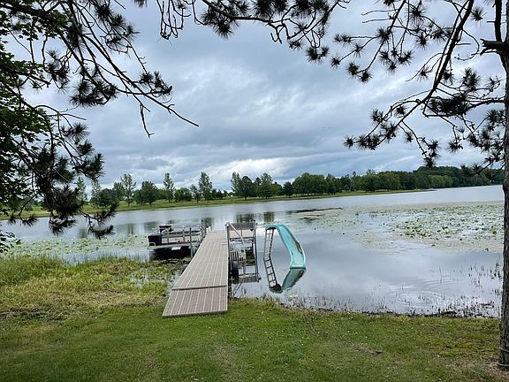 Grenquist Lake waterfront property includes over 450 ft of lakeshore, a spacious 2,100+ square feet year round home/cabin, 24x26 detached garage, dock with pontoon & paddle boat plus large 2+ acre lot with plenty of room for additional campers! Seller willing to leave home furnished. Eat in kitchen features electric heated tile flooring, oak cabinets and stackable washer & dryer; mudroom entry has wash tub sink and same heated tile floors as kitchen; main floor bedroom boasts hardwood floors and lake view; formal dining showcases the open staircase to the three upper level bedrooms also with hardwood floors; living room electric fireplace; huge family room has door to the 9x12 deck with water views! Metal roof added in 2018; new furnace and water heater; newer upper floor windows. Septic 11 years old. Tons of space inside and out and ready to be enjoyed!
