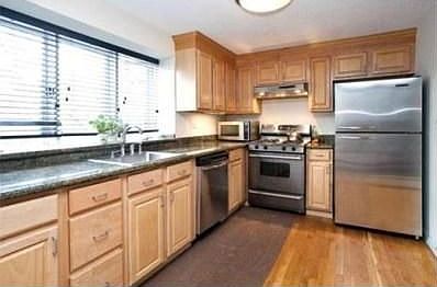 Lovely, 2 bedroom plus study, 2 bath townhome built in 1987. Flowing, open floorplan with wood flooring throughout. Kitchen with bay window, wood cabinetry, granite countertops, and stainless steel appliances. Gas fireplace in living room with custom blinds. Marble master bath. 1 direct entry garage with 1 additional outside parking space. Custom patio with pavers and plantings. Central air. Storage. 100% owner occupied, 12 unit complex. Terrific access to Mass Pike and public transportation.