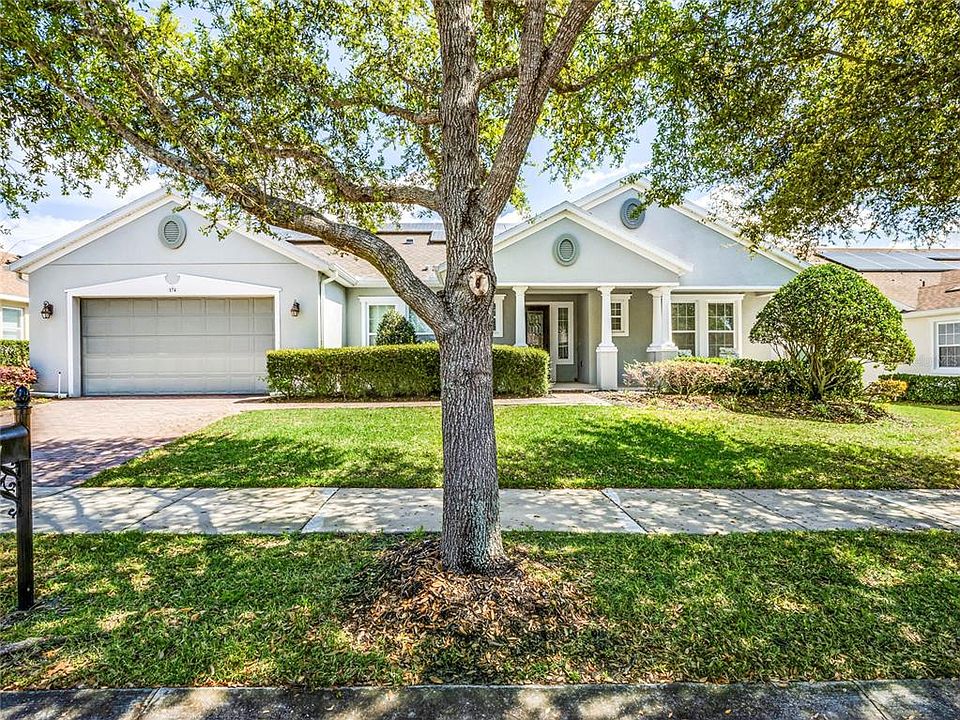 Sought after Elm floor plan behind the guarded entry of Trilogy, one of the most sought after over 55 communities in Central Florida. When you buy a home in this community you are really buying a lifestyle. Resort level amenities and award winning clubhouse with full restaurant and bar just around the corner from your front door. Golf cart friendly community too. The home is incredibly weel cared for and the Elm floor plan is the ideal design for those wanting it all. 3 bed 3 bath and 3 car garage ! The 2 secondary bedrooms have their own full baths, ideal for out of town guests. Open floor plan with high ceilings and lots of windows, washing the home on Florida sunshine. Huge kitchen with 42-inch cabinets , stainless steel appliances, NATURAL GAS range and huge island for gathering and food prep. Family room is spacious, and the dinette area overlooks the large covered and screened lanai. Owners' suite is spacious with lots of natural light. Dual vanities, walk in shower and garden tub. The walk-in closet is great size too. The one secondary bedroom also has a very large walk in closet. Storage is never an issue , the 3 car tandem garage and the massive laundry room with even more cabinets are just a couple of more great reasons the ELm foor plan. HUGE BONUS... FULL SOLAR PANEL system gets your electric bill down to the lowest it can ever go every month... only $35 !!! the 20 year lease was paid in full... so no cost to you for this TESLA system with full warranty ! Home can be sold fully furnished too if you just want to bring your clothes and toothbrush. The community has full time activities director offering nonstop classes and events daily to cover anyone's interests and hobbies. Indoor and outdoor pools, state of art fitness center, tennis courts, shuffleboard, bocce ball, theatre, billiard and poker room, golf simulator, demonstration kitchen and of course the full restaurant/ bar. Minutes from the Florida Turnpike making this the ideal community to call home. This is the perfect chance for you to start that new chapter in your life you always wanted. Priced to sell and offered in move-in condiiton, you will not find a better opportunity in the community.