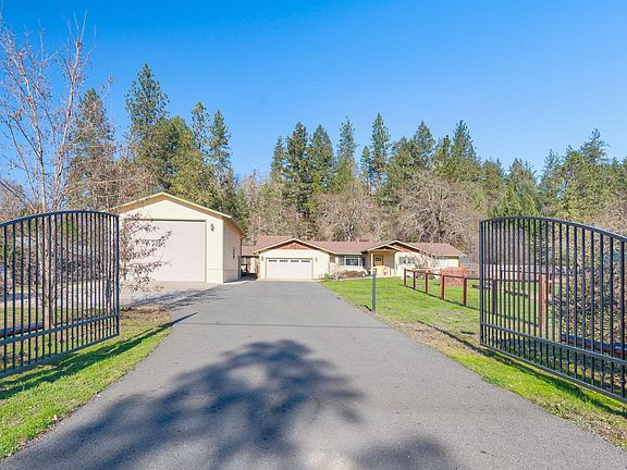 Welcome to Sunshine Acres! Discover everything you've been looking for in beautiful Southern Oregon! Updated home w/ attached guest quarters & a detached 40x26 Dream Shop, gated entry set on 1 fully fenced acre. Step inside to an open floor-plan featuring 4 bedroom, 3 bathroom 2,332 SqFt. home w/ newer roof & heat-pump. Spacious Kitchen w/ hickory cabinets, pull out drawers, live edge granite counters & skylights. Sunroom perfect for year round relaxation w/ picture windows, cozy wood-stove, porcelain plank tile. Two primary suites offer flexibility - one ideal for quests w/ private entry, kitchenette w/ mini-fridge, microwave & sink, the other open to sunroom. Love to entertain? Enjoy surround sound speakers that extend to back deck, overlooking a tranquil water feature. RV barn equipped w/50amp service to store your full size motorhome between adventures. Gardner's delight w/ fenced & irrigated raised garden beds. Just minutes from the famous Rogue River & Oregon's great outdoors!