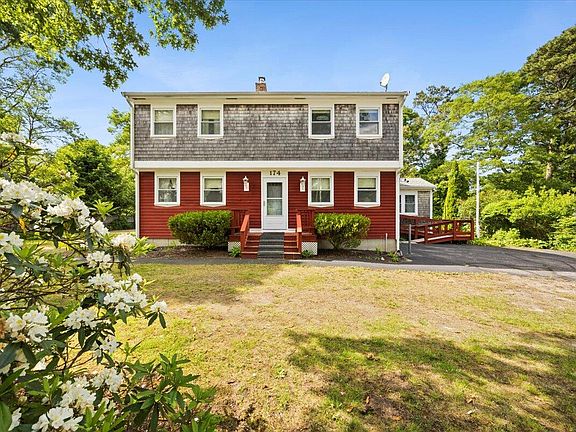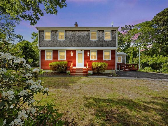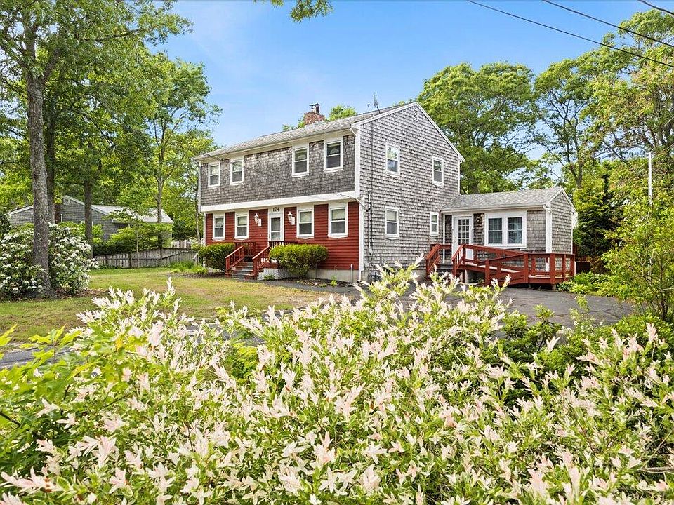 4 bedroom Colonial in Pocasset. Much loved family home (48 years!) is ready to welcome a new owner. First floor has a large living room with a fireplace, dining room, kitchen with door to very large deck, and 3 season room with sliders to the deck. The second floor offers 4 generous sized bedrooms and a full bath. Basement has a finished room along with lots of extra space. There is a level yard that is mostly fenced in. Oversized 1 car garage has plenty of room for workshop or storage. Natural gas heat. Washer/dryer hookup in basement and on 2nd floor. Within a mile you have Barlows Landing Beach with perhaps the best spot to launch your boat in Bourne, pizza, playground, post office, country market, hardware store, Chartroom Restaurant, marinas, and so so much more.