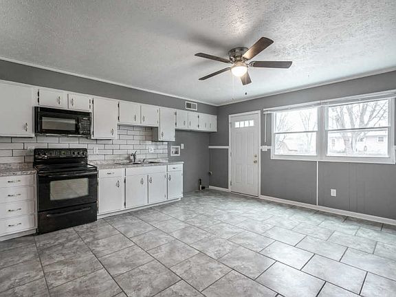 Welcome to this Remodeled Ranch. It is larger than most with approximately 1215 square feet. This provides for 3 Bedrooms, Eat-in Kitchen Stove & Refrigerator remain, Dining Room/Family Room plus Living Room. New Walnut color Laminate Floor, Fresh Paint throughout, Replacement Windows, Overhead Fans in each bedroom. The Bathroom provides New Double Sink, Double Mirror Vanity. Large Tiled Tub & Shower. Cook out on New Concrete Patio. The Driveway is longer with Carport , Shed and Fenced Backyard. Roof approx 5 years old, Heating & Air Conditioning approx 3 years old. You could even wall off & add door to Dining Room to make 4th bedroom. SO MANY UPDATES.
