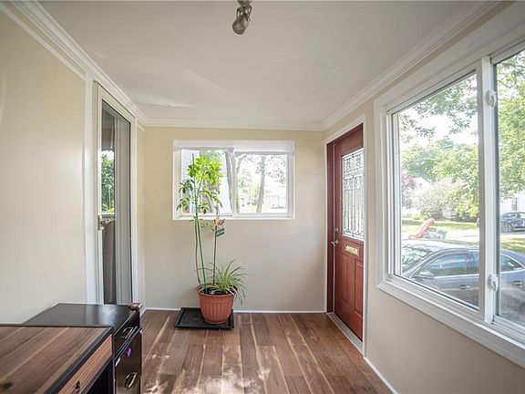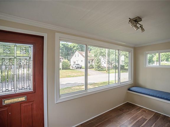 Super cute home on a quiet neighborhood street minutes away from Lake Ontario! Updates include new energy efficient windows, new siding (some), fresh paint, newer kitchen cabinets/counter tops and more! Enclosed front porch with a built in bench that lifts up for extra storage, surrounded by windows letting in all of that natural light we all love! Large living room with wood burning fireplace to keep you cozy in the colder months. Add double doors onto the bonus room right off the living room to add a first floor bdrm or office space! (bonus room has 2 closets and built in storage) The kitchen has plenty of cabinets along with a built in pantry/spice cabinet, separate work space, and stainless steel appliances (included)! Hook up your phone to the built in blue tooth speaker that is mounted right in the shower of the updated bathroom! Head upstairs to find 2 good sized bedrooms with lots of storage and a walk in closet in the master! Sliding glass doors off the kitchen lead to the perfect sized partially fenced in yard and an over sized heated garage equipped with a stairway that leads up to the LOFT! 1 YEAR HSA HOME WARRANTY INCLUDED WITH FULL PRICE OFFER!