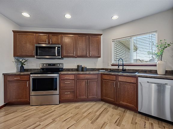 Recent updates include New Roof, New Siding, Fresh Paint, New Carpet and padding with pet barrier. This modern ranch home has 3 bedroom and 2.5 bathroom. Features include an open floor plan; main floor laundry; coat closet by front door, oversized two-car garage with workbench; primary bedroom suite with en suite primary bath with double sinks and large walk-in closet; The kitchen with pantry flows into dining area with access to the private deck with stairs to the fenced in backyard. Lower level has large daylight windows which would be great for entertaining, office, or even be used as a spacious “Bonus” bedroom. Beautiful bathroom and ample storage completes the lower level. An oversized shed in the back yard for all garden storage, including room for a riding lawn mower. When you want the perfect family home in a family-friendly neighborhood, then you won't want to miss this.