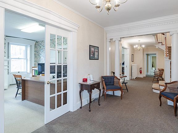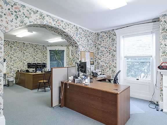 Step into the front hallway of this well-kept Broad Street Colonial and you'll be amazed by the fireplaces, beautiful woodwork, winding stairway, large windows, and updated systems. Property would make an excellent home with a few modifications or be kept as a large office with an updated in-law apartment in the upstairs-back of the home. In the evenings, the owner could sit on the beautiful covered front porch or on the private screened side porch. Clark Mortenson, the office tenant has a lease thru 3/24. There is a ton of room in the back of home for parking, Plenty of room for a garage, with town approval.
