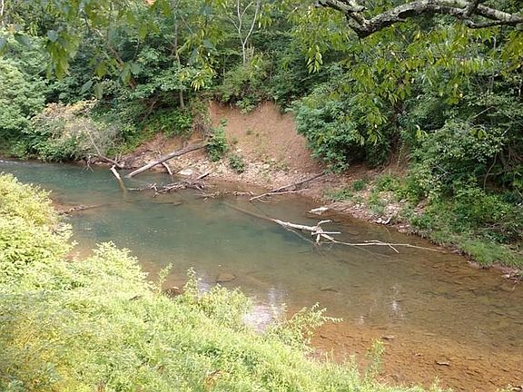 This 4 bedroom 2 bath home is situated in a serene setting bordering Piney Creek. The deck spans the entire length of the home and includes a screened in area away from the pesky insects. Step inside to the main part of the house and find an oversized kitchen with plenty of counter and cabinet space, cathedral ceilings in the living room with a cultured cut stone fireplace, with log siding and wood flooring to create a cozy cabin feel. There is a 3/4 bath on the first floor, laundry area, forms dining room and den. The second floor consists of 4 bedrooms with closets and a full bath. Half of the main roof has been replaced recently. Tons of potential in this well built 1800's home!
