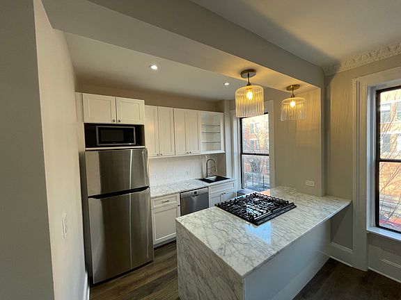 No broker fee and move-in on October 1, 2025! Spacious and recently renovated 1 bedroom apartment with in-unit laundry and dishwasher, located one street away from Fort Greene Park. This unit is on the 2nd floor of a beautiful pre-war brownstone located one street away from Fort Greene park, offering lots of light during the day. Features new kitchen with marble countertops (including island with waterfall) and newly renovated bathroom with floor to ceiling decorative tile as well as rainfall showerhead. Equipped with new appliances, including dishwasher and in-unit washer/dryer. Three large closets for clothes and storage. Open concept living-dining space. Equipped with video intercom. Unit is available on October 1. Apartment is being rented by owner, no broker fee. Hot water and heating included. Pets are subject to owner approval. Please reach out by email to organize a visit if interested. 20$ application fee.