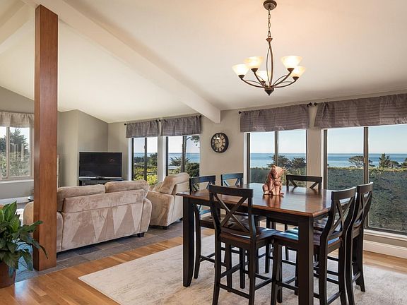 Situated behind tall hedges on Carmel Highland's Riviera, home features grand up-stair spaces: kitchen opening to dining area & family room with vaulted ceilings. The floor is a combination of hardwood and slate. Kitchen features granite & tile countertops, LG stainless refrigerator, 5-burner gas cooktop, Bosch dishwasher & Dacor oven. There is a marble island for food prep with multiple cabinets & drawers.There are 3 Carmel Stone fireplaces. Also on upper level is a living room, grand master suite, his & her baths. The lower level has a parlor, 4 bedrooms, 2nd master suites, 2 baths, large laundry & workout room. 3-car garage has entrance into lower level. The backyard features a path through gardens, 2 waterfalls, high-lighted by 4 red-barked Marina Madrones. Occupants have access to a homeowners association private beach and tide pools. Watch the whales, entertain on the ocean-view deck, enjoy the comforts of ample spaces & live the good life on the Carmel Highland's Riviera.