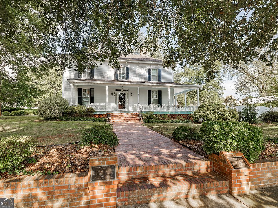 New to Market! They just do not build homes like this anymore! Listed on the National Historic Registry, the Seaborn M. Shankle house is thought to be the oldest building in Commerce, GA. Located in the Central Business District and zoned Residential/Commercial, this historic home offers a myriad of potential uses. Only an hour from Atlanta via I-85N, convenient to Athens, Lake Hartwell, Lavonia, Braselton and more. The original structure was built by Eli Shankle, one of the first pioneers of the area. He established a trading post and with his wife Rebecca built a two-room cabin c. 1843. In the mid-1870s, their son Seaborn Shankle added the larger Italianate-influenced house around the existing structure. Both the original cabin and the 19th-century addition comprise the existing house you see today. With modern updates, many original details, and a beautiful pool, the next caretaker can easily transition into carrying on the home's legacy. The grand central hallway is flanked by a parlor and dining room, as well as two additional spaces to be utilized as bedrooms or additional living spaces. At the end of the hallway is a spacious, updated bathroom and laundry room. At the rear of the home you'll find the kitchen and walk-in pantry. The natural beauty of the property is further enhanced by the newly added hardscaping by Smith Planning Group, perennial plantings, irrigation system, and pool. A wrap-around porch provides the perfect perch for enjoying the home's surroundings. Upstairs are four bedrooms and a central bathroom with clawfoot tub and access to a Juliet balcony overlooking the rear yard. Shankle House is also known for being the childhood home of the author Olive Ann Burns, famous for her novel Cold Sassy Tree, which she based on characters and stories from her family's time living there. There is so much to love about this property - from the high ceilings, original moldings, hardwood flooring, and pool to the walkable location near restaurants, a brewery, and local parks.