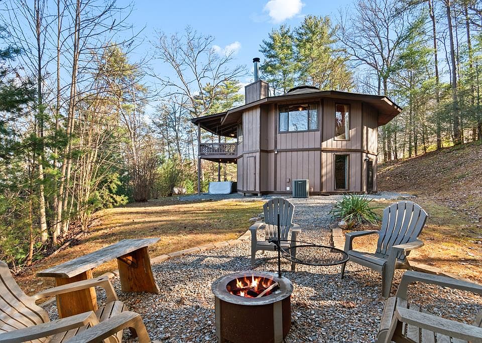 Mountain-Top Roundhouse Retreat on 2.3 Acres Discover a one-of-a-kind mountain sanctuary perched high above the treetops. This architecturally unique round home offers sweeping 360 views, unmatched privacy, and a peaceful connection to the surrounding natural landscape. Flooded with light and wrapped in panoramic windows, the open-concept design makes the outdoors feel like part of every room. Step inside to soaring ceilings, warm wood finishes, and a circular flow that creates both comfort and sophistication. The spacious main living area centers around the views, opening to a wraparound deck perfect for morning coffee, sunset watching, or stargazing at night. Set on 2.3 secluded acres, the property offers endless opportunities—gardens, outdoor entertaining, hiking paths, or simply relaxing in complete tranquility. Despite its private mountain-top setting, the home remains conveniently close to nearby towns, lakes, and outdoor recreation. Whether you're seeking a year-round residence, a peaceful retreat, or a standout short-term rental, this mountain-top round house is a rare gem combining design, nature, and serenity.