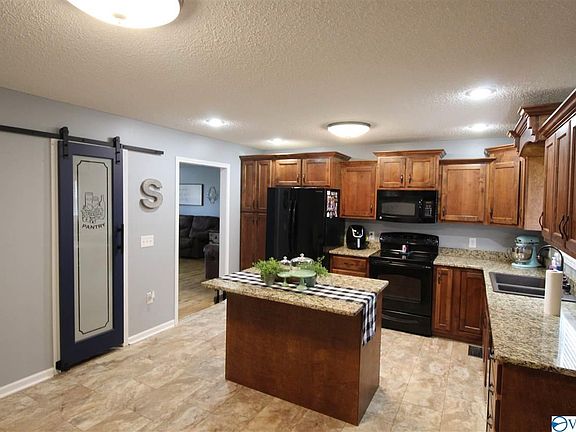 Spacious 4 bedroom 2 bath home with custom cabinets, granite, hardwood floor in living room, LVP in kitchen, oversized 2 car-garage, acreage, and a small pond!
