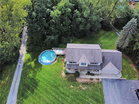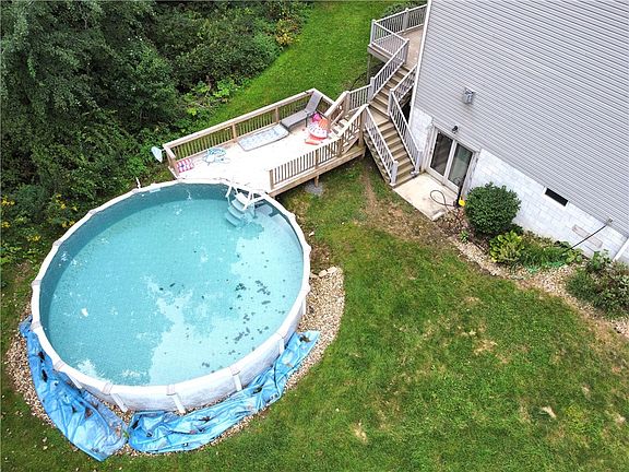 Tucked behind the trees and close to everything. Private drive leads to a wooded scene everywhere you turn. Love to entertain? Whether hosting Sunday football games or pool parties in the summer, plenty of room to gather around. Spacious eat in kitchen open to the family room and to the back deck. Option for a formal dining room around the corner along with a sitting room on the other side of the foyer. 1st floor laundry and half bath. Four generous sized bedroom upstairs. Main bedroom hosts en suite including luxurious soaking tub, tiled shower, dual sinks at the vanity and a walk in closet. Attic area attached makes for convenient storage or could be finished for an owner's retreat. Extra space could be obtained by finishing off the basement that walkouts to the pool. 2 car attached garage. What a wonderful place to call Home!