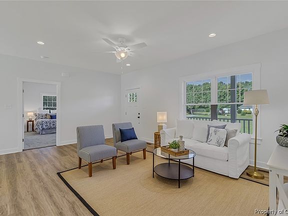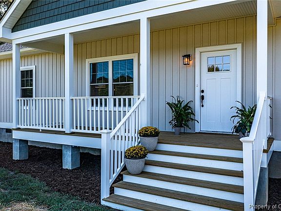 New Construction – Move In Ready – In the water access community of Bay Country Estates. Light open floor plan with 9’ ceilings. Three bedroom, two baths. Kitchen has a large island with space for four stools. Stainless steel appliances. Generous laundry/mud room with a pantry just off the kitchen. A large 12’ x 22’ covered back porch is the “best room in the house” overlooking a beautiful back yard. The porch is designed so that it can easily be converted into a screened porch. Beyond the back yard are woods and a small creek (out of sight) that creates a private nature oasis with no neighboring houses behind the woods. Nice roads for walking or biking. The community offers a boat ramp for access onto Bush Creek and the Rappahannock River. Home is 98% complete, with last details completed by closing.