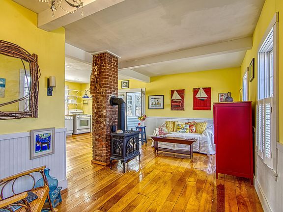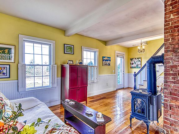 Bright and sunny year-round home in the heart of Corea Village. Lovingly restored and maintained, on the first floor you'll find an open living, dining and kitchen area with a gas stove to supplement the baseboard heat for extra coziness. This leads to a fully enclosed sunroom with its own stove and plenty of windows to catch the sunshine and views.