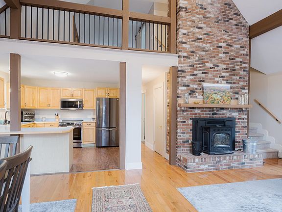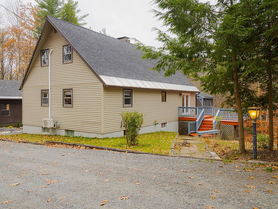 Move right in to this unique 3 bedroom, 2 bathroom Cape! The property also includes an oversized 1 car garage and work shop and 2 acres of wooded privacy on a quiet road. A large, wrap around porch greets you as you pull up to the home and provides multiple entries to the home! They all lead you towards the open concept living, kitchen and dining area with cathedral ceilings, exposed beams, and a stunning, floor to ceiling brick hearth with pellet stove insert. The kitchen has new stainless steel appliances, granite countertops and a breakfast bar that opens into the dining area, providing extra seating and counter space. Wood floors throughout the first floor lead you to two good sized bedrooms and a full bathroom. On the 2nd floor you will find a large loft bedroom with 3/4 bathroom that would make a perfect primary suite! There is a large concrete basement with a bonus room that would be perfect for that office, home gym, craft space or play room. There is even a fireplace down there for heat in the winter. Outside you will find plenty of room for gardens, exploring and enjoying nature. The wrap around porch has a screened in porch addition keeping the bugs and rain away so you can enjoy the peace and quiet anytime! A large, detached garage has space for more than 1 vehicle and a work shop. Close to 101 you will have easy commutes to surrounding towns, cities and all of the local attractions!