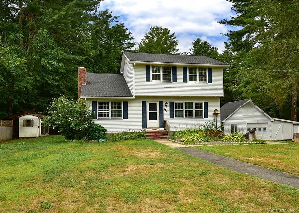 A surprising property, 4.32-Acres with a brook and your own private pond. The house has a newer roof (2015) and features a 1st floor master suite with full bath, laundry closet, separate side entrance and sliding glass doors to a large deck overlooking your great back yard and private pond. There's a large living room, dining area, kitchen, home office / den and a half-bath / wash room on the main level as well. Upstairs you'll find three (3) nice size bedrooms and another full bath 2nd floor is electric heat. In addition to the workshop and 2-car under garage you also have a barn / garage with loft for storage, another storage space to the side and on the back, and a warm air oil furnace for heat. The barn / garage furnace has not been hooked up and/or running, it's operational status is unknown, and is sold as-is. A true diamond in the rough, some updates, and sweat equity will make this gem will really shine again.