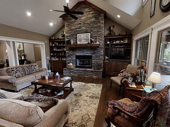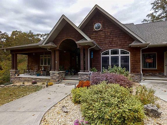 Custom, builder owned home 0.5 mile from Bull Shoals Lake boat launch. Kitchen features walk in pantry, double wall ovens, gas cook top, side by side prof all frig all freezer, maple cabinets & more. Basement setup w/kitchenette, 2 bed, 2 ba, office, sep utility, storage and large family room. Bonus room apartment over 3 car garage with pull through for your boat. Master suite w/jetted tub walk in shower & 2 walk in closets. All this on a level wooded lot that joins corp of engineer property.