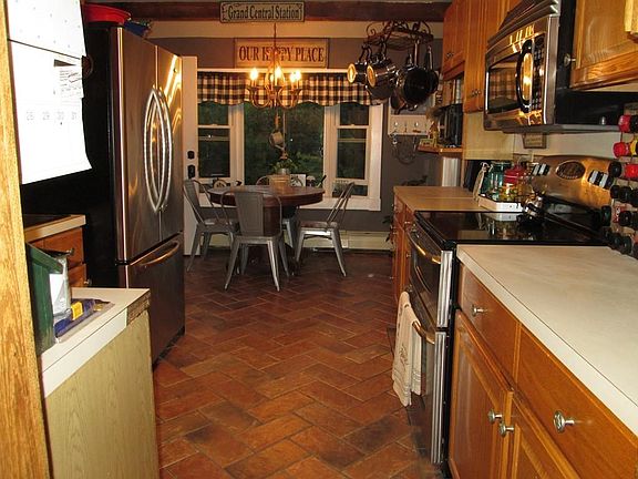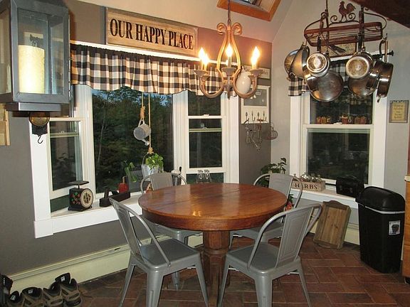 - Kit Dscrp: Main Level, Dining Area, Deck - Exterior, Skylight, Flooring - Stone/Ceramic Tile, Window(s) - Bay/Bow/Box, Country Kitchen, Ceiling - Vaulted