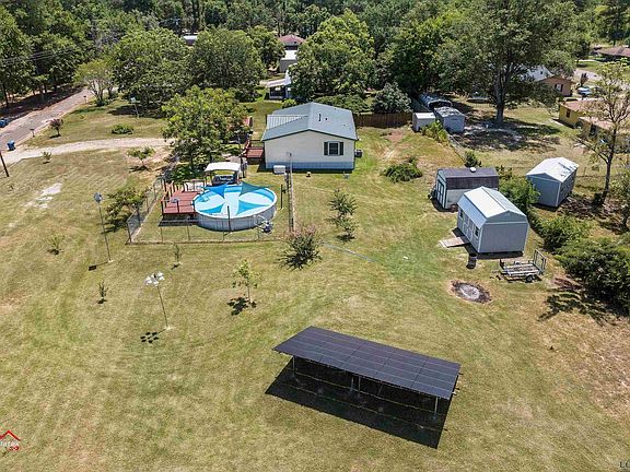 Country life but in the city limits. 3/2 with Carport, on a 1.75 acre, corner lot, partially fenced with an above ground saltwater pool with sails to give you some shade and Hot Springs saltwater hot tub with cloth retractable cover waiting for you to relax and enjoy the peace and quiet. This home has a full house natural gas 2021 Generac Generator with extended transferrable warranty effective through 12/13/2030, East-Tex Solar panels, w/25 year guarantee on panels, free standing in the field installed in March 2022, On-demand hot water with a gas tankless water heater. March 2017, new metal roof, Insulated vinyl siding, gutters, spray foam insulation under house, Kenmore gas stove, LG Refrigerator and Washer and Dryer, Whirlpoolupright freezer and 1 chest freezer; Arien 52" zero turn mower, apprx 3 years old, less than 400 hours, double pane vinyl windows installed 2002, New A/C inside and outside units installed in 2021, new duct work and two new air returns installed, as well. New gas lines installed 2021, 3 stor. bldgs, 2 w/electricity, 1 with windows & insulation. ADT Security, New Kitchen sink installed 2020, Open floor plan, LR and master carpet installed with upgraded padding - 2021. Inverter has its own wifi ADDITIONAL PICTURES