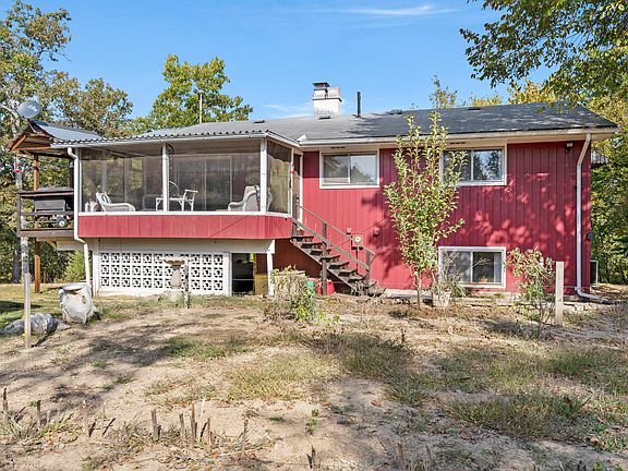 Price Improvement! Come home to your own private retreat with this charming 3BR, 2BA split level home peacefully situated on 2 secluded acres within walking distance of Bull Shoals Lake. Spend mornings and evenings on your spacious screened in porch observing deer and other local wildlife with a serene wooded backdrop. Inside, you will appreciate the practical and efficient layout of the home such as an open living room/dining room with a wood burning fireplace and large picture windows overlooking the outdoor landscape. Other unique features include a central vacuum system, laundry area, 3/8'' laminate flooring with waterproof underlayment on the lower level and solid oak wood flooring throughout the upper level. One of the bedrooms has a murphy bed for added versatility, and there is an abundance of coveted storage areas. The kitchen boasts quartz countertops and 21 cabinets, including 2 pantries and modern appliances. A fourth room with built in shelving will make the perfect office or can be used as a 4th non-conforming bedroom. The economical baseboard heating system allows you to individually select temperatures in each room during those colder months. All of these features and more contribute to the character of this home that you will enjoy year after year. A 24'x40' enclosed metal shop building with overhang complete with concrete floor and wood stove, large garden shed, and 14 1/2' x 45' boat port provide outdoor storage and additional parking. A 50 amp RV hookup provides added convenience for friends and relatives who want to bring their RV's to visit. While soaking up all the peace and quiet that this property offers, you will still enjoy being only 5 minutes from amenities such as local restaurants, shops, the bank, and local hardware, convenience and grocery stores. Come experience country living at its finest. Schedule your showing today.
