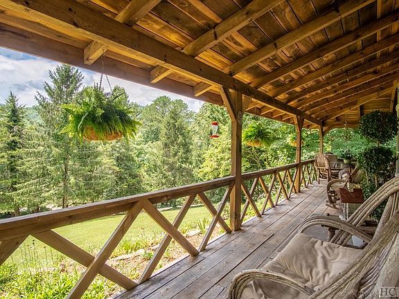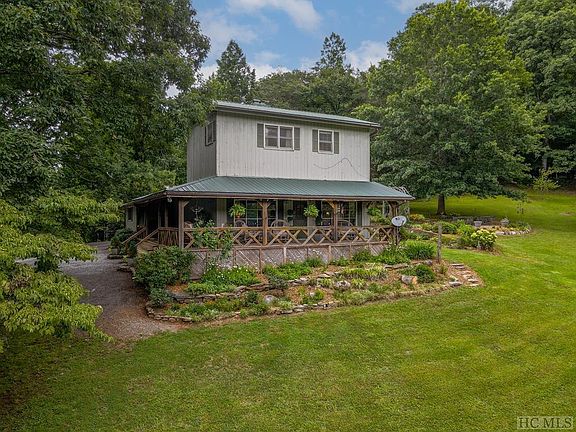 Everyone loves a good story and this one dates back to 1952 when the current owners Grandparents purchased this property and built the original home. In 1974 Wraparound Porches, Primary Suite & Living Room were added. 10 + Unrestricted Acres w/Mountain Views, Meadows, Hiking Trails & Custom 51' X 32' Barn built 2010. Two Room Old Timey Log Cabin made with hand hewn logs from Cooks Sawmill, could be converted to a Guest Cottage. Viewing Patio plus a 2nd Covered Patio with gorgeous stone pavers. Bring Family and Friends -- make your mountain memories in this spacious, 3 BR, 2 BA, home w/2800 +/- SF. Big Living & Family Rooms, Eating Area & Kitchen all Open. Studio/Office too. Updated Kitchen w/Granite Counters, Hickory Cabinets. Stainless Appliances new 2022. Knotty Pine Walls, Original Wood Floors & Massive Rock Fireplace add to the charm. Second Home (of no value) has a Holland Well & Old Barn made from Wormy Chestnut. Beautiful Perennials, Apple & Peach Trees, Blueberries & Grapes. Enjoy Yard Games in the Meadow and Exploring the Hiking Trails! Paved to the Door easy access. Convenient location just 4 miles to Franklin, 12 miles to Highlands and Waterfalls!