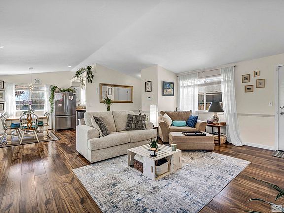 Charming home that has been well updated & upgraded throughout the years! Great open concept floorplan with a large great room, open concept kitchen and dining room, and three nice sized bedrooms with two full bathrooms! The garage is a great size with storage as well. The A/C & furnace were replaced in approximately 2015, roof replaced in 2021, exterior painted in 2022 & new hot water heater in 2019. This move in ready home is ready for someone new to call it home! Great location and centrally located!, There are three bedrooms, one being the primary suite with an attached full updated bath, a walk in closet and access to the backyard. The kitchen is updated with granite counters, stainless appliances & access to a private side yard patio! The living space in the house offers beautiful laminate floors, loads of windows, and vaulted ceilings. The backyard is private with a large grassy area, dog run and side patio which offers great shade in the summer afternoons. Come see this charming home today!