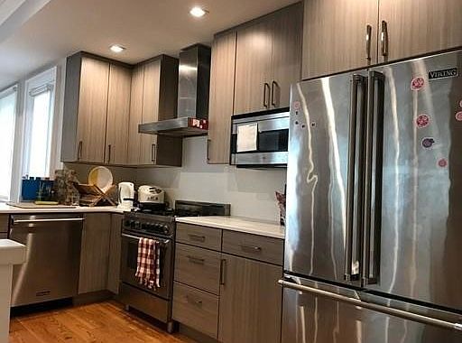 Deck In-unit laundry Garage parking Central AC Gorgeous 2 bed unit meticulously constructed with the utmost attention to detail! Contemporary Cabinetry abounds the kitchen, quartz, countertops with stainless steel appliances, space is enough for a good size dining table! Gleaming hardwood flooring, Steps away from Red line, food places, supermarkets and convenience stores!