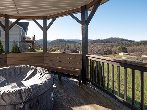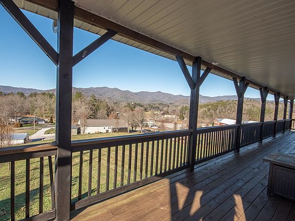 AMAZING PANORAMIC MOUNTAIN VIEWS from this 3 bedroom + Bonus Room+ 3 bath home in Cowee Community! This home offers elegant finishes such as granite counter tops in the kitchen & Master Bath, Stainless appliances, tile & Hardwood floors. Easy SINGLE level living and has easy paved access to the upper or lower level. On the Main level 3 full bedrooms and 2 baths, the master bed with en suit bath that has dual vanities, shower AND a tub to relax in after a long day! The lower level offers storage galore, garage/ workshop space and is plumbed for an additional bath. Upstairs in this spacious home you will find a HUGE bonus room with large dormers for plenty of light. Also a full bath and a craft room, office or 4th bedroom (no closet, 3 bedroom septic) The living inside this home is just as great as the outside!! The outdoor living space and gentle yard let you enjoy all the beautiful mountain weather. And you can't forget the full length covered porch with built in gazebo to take in those stunning year round mountain views! Gentle property and views like this are RARE!