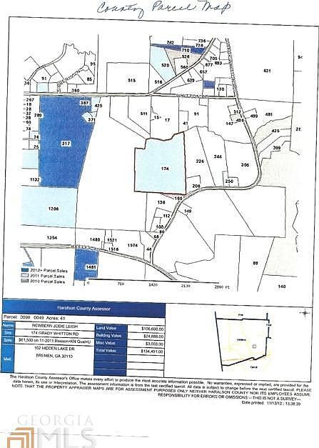 This is a 3241 square foot, vacant land. This home is located at 174 Grady Whitton Rd, Bremen, GA 30110.