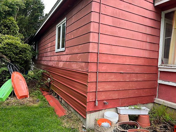 2 bedroom 1 full bath home on .34 acres. 2 plus car garage. Sold as is with contents in place at the time of closing. Dry basement, newer propane furnace. Water has been turned off at the street. Poured concrete foundation. House was built in 1979. Garage of older construction.