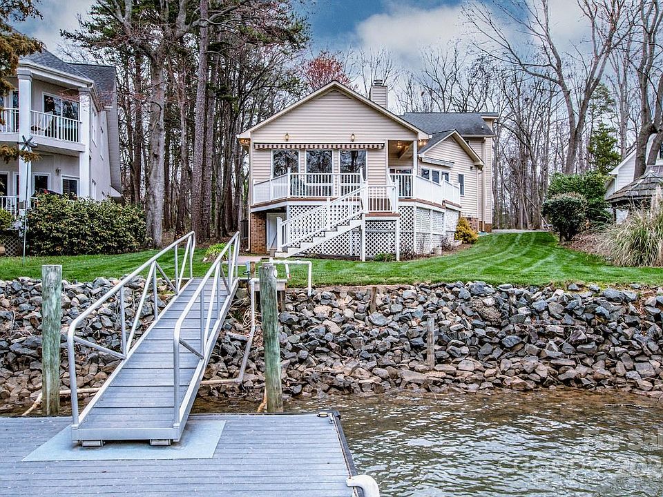 Here is your chance to get on the water in Bridgeport! Year-round water with extended views off the dock. Primary and Second Bedroom on the main level with easy entry from your expansive driveway. 3 Car Garage. Boat Slip/Dock & Pier redone with low maintenance in mind in 2008. Gorgeous decking. With some updates, this one will be a show stopper; perfect for entertaining. Enjoy Bridgeport amenities featuring Lake Access, Tennis, Playground & Pool. Bridgeport is on a community well monitored & maintained by Aqua. 3rd & 4th bedrooms along with a private office upstairs. Location is perfect for commuting to Charlotte, just mins away from I77. Roof: 2008, HVAC Replacement invoices upon request. New Grinder Pump 2022.