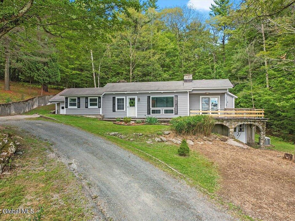 Located in the town of Petersburgh, NY, Enjoy the beautiful rolling mountain hills, exceptional views and privacy. 105 Acres in total overlooking the Berkshire Plateau. Recently hand painted exterior. Custom and quirky one floor living with finished walk out basement awaits. Pony Barn, Spring House, Stream and Pond on property. Ideal for the nature lover, homesteading, perfect for hiking, mountain biking, skiing, area hunting and fishing. Closets and built ins galore. Hand carved Mantel in living room. Work shop located in the basement, plumbing for your sauna has been prepped. 4 Car detached garage offers plenty of parking along with loft storage and work bench area. 3 season covered breezeway is home to an old wood fired cook stove. Relax on the deck and take in all that is offered.