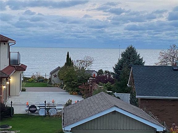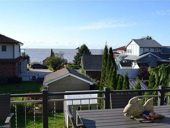 Welcome to your Port Stanley home with year round Lake Views and spectacular sunsets! Located in the quaint Orchard Beach area. This year round executive home features 5 bedms, 2 baths, solid 1 inch thick oak flooring throughout the main floor formal dining rm, spacious living rm, with custom gas fireplace, french doors leading to a tranquil private fenced yard with water feature and fish pond, Enjoy the no maintenance back yard. Eat in kitchen, main floor utility rm. with laundry, Custom wrought iron and oak stairs lead to the second floor and a double linen closet with decorative glass shelves. 1 inch thick plank pine flooring. floor to ceilings windows provide the master bedrm.with panoramic lake views & Walk in closet. The southwest bed rm has french doors to a 10' x 19' balcony with Lake Views Outside are beautiful front gardens, storage shed with hydro, attached heated triangular shed, driveway with Private parking for 4 cars plus 30 Amp.RV. receptacle in driveway, 200 amp hydro service. The appliances included are sold in an as is condition with no warranties or guarantee by the Seller.
