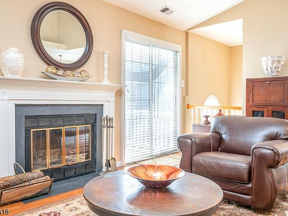 Welcome to this bright open 2nd floor condo. It boasts beautiful wood floors, new open wood bannisters. French doors to Br/den. New vanity and tile floor in Master bath! Newer C/A & H2O heater. New white wood style blinds. Wood burning fireplace in your living room and glass sliders to private deck! 2 cats are allowed! Easy access to buses, train and major highways! Also beautiful Morris County parks and golf courses nearby!
