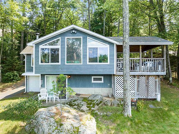 Enjoy a "Lake Escape" to this home on a .48 acre wooded lot on the beautiful and quiet Pickeral Cove just off Lake Winnipesaukee. This 2 bed/1 bath home features a direct lake view kitchen & dining room, high ceilings, screened in porch, bonus basement room, and lower garage storage in the basement. There is plenty of parking, trailer storage and your own private boat launch. Fishing boats, jet skis and low height small boats can access Paugus Bay at the cove entrance. It's like living on two different lakes at once! Located just minutes from many marinas for larger boats.