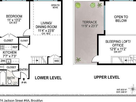 Lofty penthouse unit with private outdoor roof deck perfect for enjoying the sweeping views of Manhattan and to create your work from home studio. This is currently configured as a one bedroom apartment with an additional sleeping loft/office which boasts 20' ceilings and massive floor to ceiling windows that draw natural light to every corner. Details include built-in speaker system, reclaimed brickwork and Douglas-fir beams as well as wide-plank wood flooring. The kitchen has Fisher & Paykel stainless steel appliances, Luca de Luna natural quartzite counters , Bosch dishwasher, and custom-made cabinetry. The bathroom has both marble tiles and vanity top with a deep soaking tub. There is also a washer/dryer in the unit, a private deeded storage space and bicycle rack. Jackson Street is a peaceful, tree-lined block in Williamsburg: a few short blocks to McCarren Park & countless bars and restaurants. Within 3 minutes to the Graham Avenue L train and 5 minutes to the Metropolitan Avenue G.