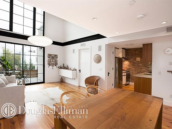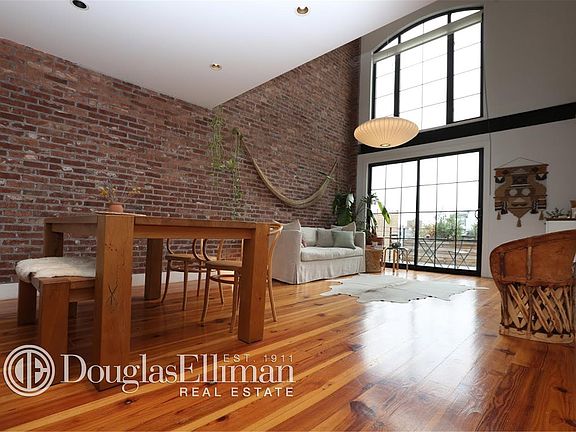 Lofty penthouse unit with two private outdoor spaces - a terrace and a roof deck - perfect for enjoying the sweeping views of Manhattan. This two bedroom apartment boasts 20' ceilings and massive floor to ceiling windows that draw natural light to every corner. Details include built-in speaker system, reclaimed brickwork and Douglas-fir beams as well as wide-plank wood flooring. The kitchen has Fisher & Paykel stainless steel appliances, Luca de Luna natural quartzite counters , Bosch dishwasher, and custom-made cabinetry. The bathroom has both marble tiles and vanity top with a deep soaking tub. There is also a washer/dryer, private storage space and bicycle racks.Jackson Street is a peaceful, tree-lined block in Williamsburg: a few short blocks to McCarren Park and the Graham Avenue L train as well as countless bars and restaurants.
