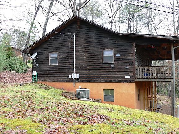 Location, Location, Location! This awesome mountain cabin in Franklin NC is only 5 mins from the heart of town. It has a nice view, level access, easy drive and an easy to take care of lot! There is a nice view from this home and it has tons of decking (covered & uncovered). There is a "wood elevator" to bring up wood from below to your Vermont Castings wood stove! This home has a nice vaulted and beamed ceiling in the living room with direct access to the covered portion of the deck. There are two bedrooms on the Main level and 2 baths... The master has it's own bath ! Dual Zone HVAC, for the upper and lower level. The lower level has a bonus room that could be made into a bedroom, it has a MURPHY BED in there now. The lower level is replete with a good sized garage/workshop and extra storage! The lower level is also plumbed for an additional bath etc. HVAC system is only 5 years old, New roof and gutters only 3 years ago, septic pumped 5 years ago. This home has a whole house fan system too along with late model stainless appliances! It's an awesome home and just waiting for you to move in! This home also has a gentle stream running through the property on the property line...