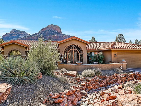 Nestled among Sedona's red rocks, sits this wonderful, Southwest home, featuring a split floorplan and a separate and spacious Casita. Walking up to the home, you are greeted with a front courtyard complete with artful landscaping, water fountain, and an elegant iron gate. As you step into the entrance, an expansive great room is revealed, with unbeatable views of iconic Elephant Rock framed through 5 huge windows. A wonderful kitchen with, granite countertops and lots of cabinet space, opens to the great room and makes entertaining easy. Sliding glass doors open to the back deck and patio. New roof in 2021 and new A/C in 2022. Comes fully furnished except for several personal items. Currently a popular Airbnb, please call for showing availability. Revenue numbers available on request