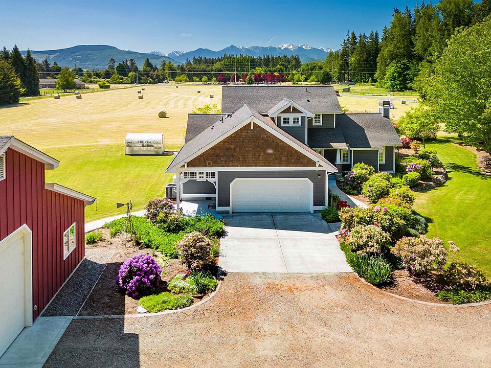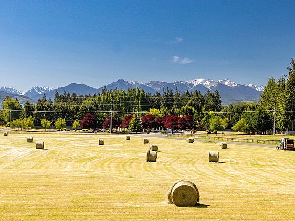 Beautiful 10.34 acre Mountain View property is conveniently located outside of town. This property is ideal for outdoor enthusiasts! Level acreage with a delightful court yard to take in the Astonishing Olympic Mountain Views, Awesome 2112 SF heated Barn/Shop with Bathroom and pull through RV or Classic Car Storage. The 3 bed/2.5 bath home offers a primary suite and laundry room on the main floor. Wonderful mix of lawn and trees w/ a mature orchard, garden space, and greenhouse. One-of-a-kind!!
