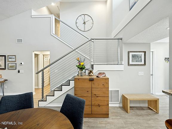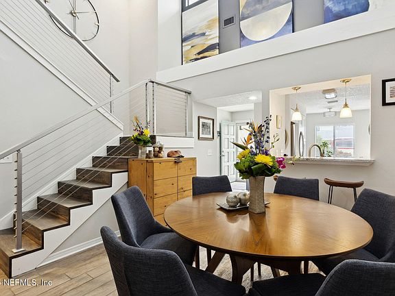 Meticulously updated Ponte Vedra Beach home in sought-after Village of Solano. This 3 bedroom, 2 ½ bathroom townhome blends classic and modern styles. Updated kitchen with stainless appliances, granite countertops and breakfast nook. The great room features a spacious dining/living area and wood burning fireplace. The vaulted ceiling leads to clerestory windows that flood the home with light. The primary bedroom features an en-suite bathroom, custom walk-in shower and walk-in closet. Wood-look tile floors throughout the main floor. Access the screened-in lanai from both the great room and primary bedroom. The garage features a Shark Coating floor and EV charging outlet.