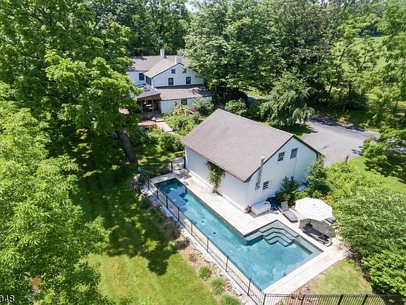 This 22.67 acre farm assessed property has been lovingly upgraded and cared for since the owners purchased it. In all over $250,000 has been invested to modernize, update and improve the property. Most recently, central air was installed in late 2019 and the heated salt water lap pool with stone surround was installed in recent years. This property is located on a quiet country road just outside of Lambertville and Stockton, NJ. The bucolic setting invites you to sit on the covered rear patio or on the expansive deck and take in the views of the land, pond and stream. The property also provides convenient access to Routes 202 and 179 so you are never far from anything. Fencing was added between the house and driveway to provide additional privacy. When walking into the side gate you feel immediately at ease looking at the pond and land. A stone walkway leads to the rear of the house and the covered stone patio. The outdoors can be enjoyed no matter what the weather from this area. The patio flows out to the Brazilian ironwood deck measuring roughly 32 by 23 feet and a cedar oak hot tub is located here. Upon entering the house from the covered patio one is welcomed by the family room and kitchen which feature beamed ceilings and built in bookcases. The family room is warmed by a fireplace during the colder months. The kitchen has a beautiful tile floor and has been updated with honed and enhanced granite counters, stainless steel appliances, and tile backsplash. The space is large enough for an eating area to enjoy more informal meals. The decorative stone fireplace in the kitchen is no longer in use but adds character to the space. The dining and living rooms both feature crown moldings, beautiful wood floors and have nice views of the side and rear yards. The alcove between these two rooms has a built in cabinet and doors featuring glass from a local glass studio. The large living room is warmed by a fireplace, has built in bookcases and cabinets. Stairs lead to the second level where three well sized bedrooms and a renovated full bathroom are located. A sliding barn door in the upstairs hall opens to the master bedroom suite which is also accessible via stairs from the kitchen. The master bedroom suite has a wall of windows that provides glorious views of the pond and land. The renovated master bathroom features a glass top vanity, stall shower and radiant heat floor. An insulated walk up attic is accessible from the master suite and a second walk up attic is located in the hallway. Other features include a half bath on the main level, ample storage in the basement, and wide plank wood floors in most of the rooms of the house. The two-car detached garage has a large heated workshop/studio space on the second level and measures 29x17 feet. This space was once used for woodworking and pottery but could be used for anything including extra storage. Additional exterior features include a vegetable garden and an orchard with grapevines. Both areas have sheds and are surrounded by deer fencing. A wood shed and an additional outbuilding is used to store tractors and additional equipment. The stocked pond has a small dock where a canoe or kayak can be kept. Due to the farm assessed land the taxes remain low at $16,653 per year. Come visit this beautiful property, sit on the rear patio or deck and appreciate all that it has to offer! 2020-09-05
