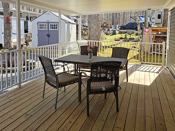 Move-In Ready Seasonal Retreat - Immaculate & Fully Furnished. Escape to this beautifully maintained 1-bedroom, 1-bath getaway that comfortably sleeps four. Featuring an eat-in kitchen and cozy living area with a fireplace, this fully furnished home-inside and out-offers everything you need for a perfect seasonal escape. Enjoy the comfort with two AC/heat split systems and ceiling fans throughout. Step outside to your private fire pit area with a wood pile ready to go. A shed is included, complete with a ladder and leaf blower for convenience. Located on a quiet one-way street, this peaceful retreat is part of a vibrant seasonal community (open April-October 31st) with seasonal fees already paid! Amenities include: cable TV, grey water and pump-out service, lake and beach access, swimming pool, basketball court, clubhouse, guest parking, park, playground/tot lot, road and grounds maintenance. Enjoy fishing, swimming, or one of the many weekend activities for all ages. Take a scenic walk on the Nipmuck Trail or relax on the tranquil front porch and soak in the natural surroundings.